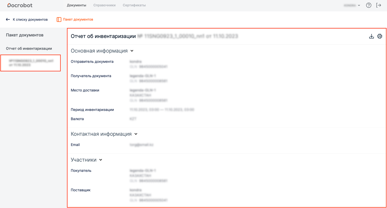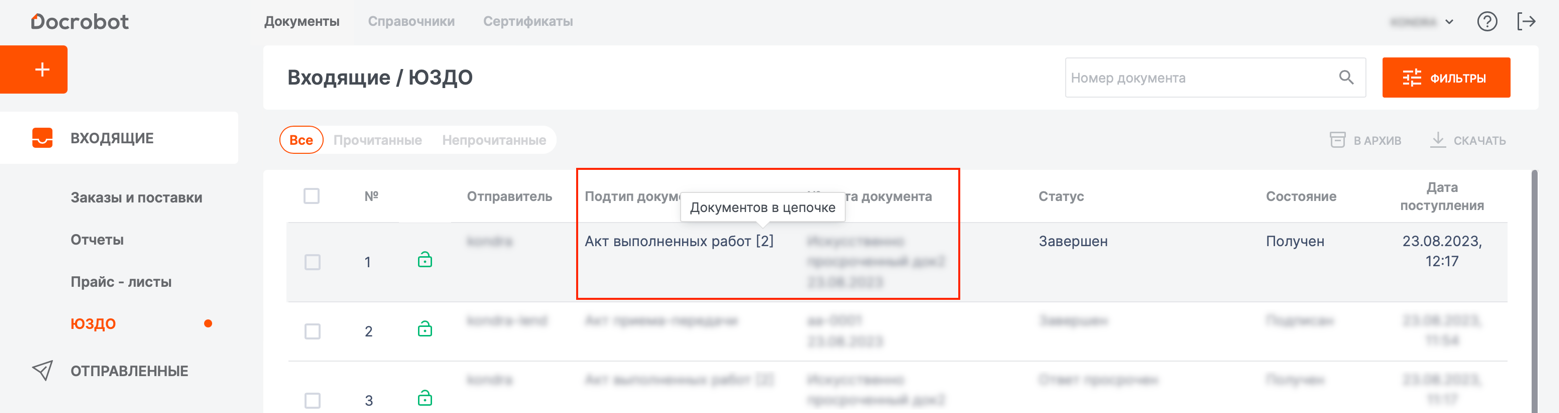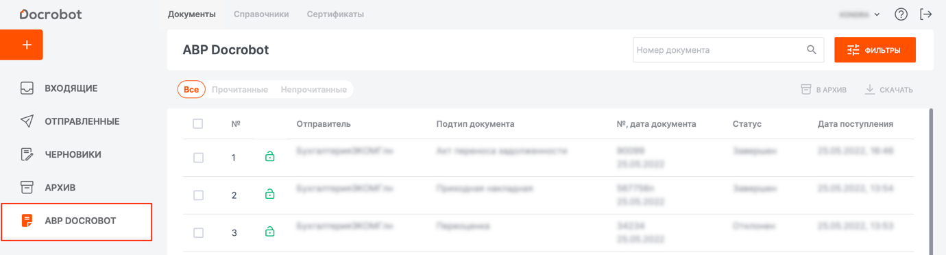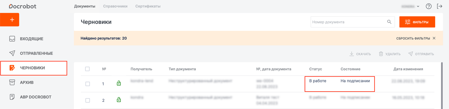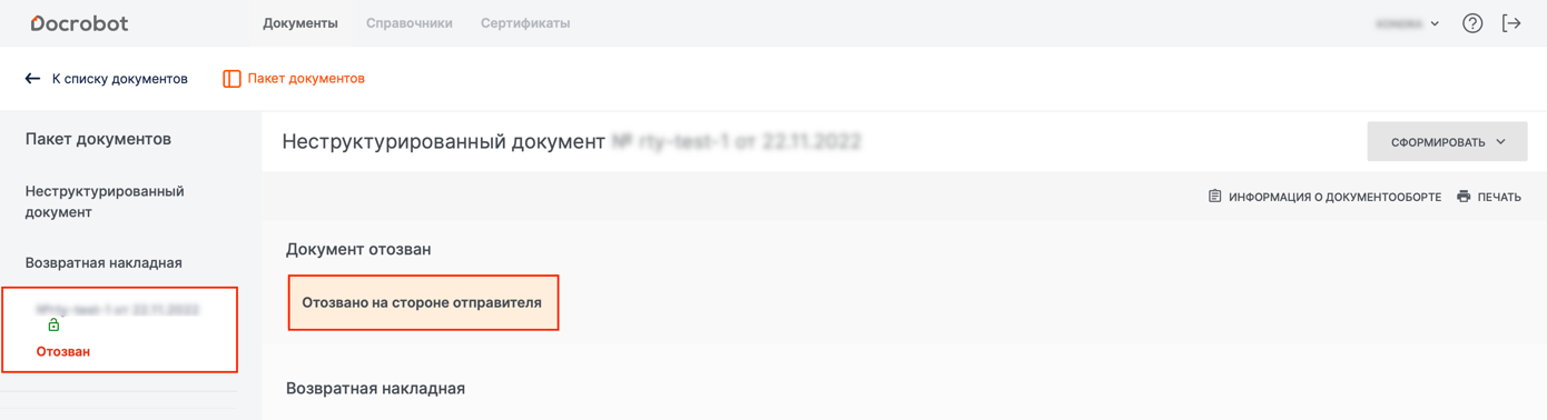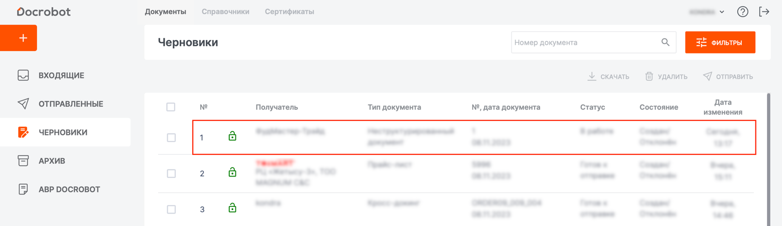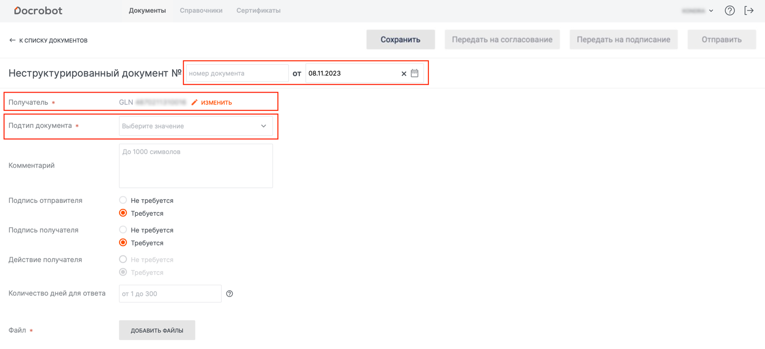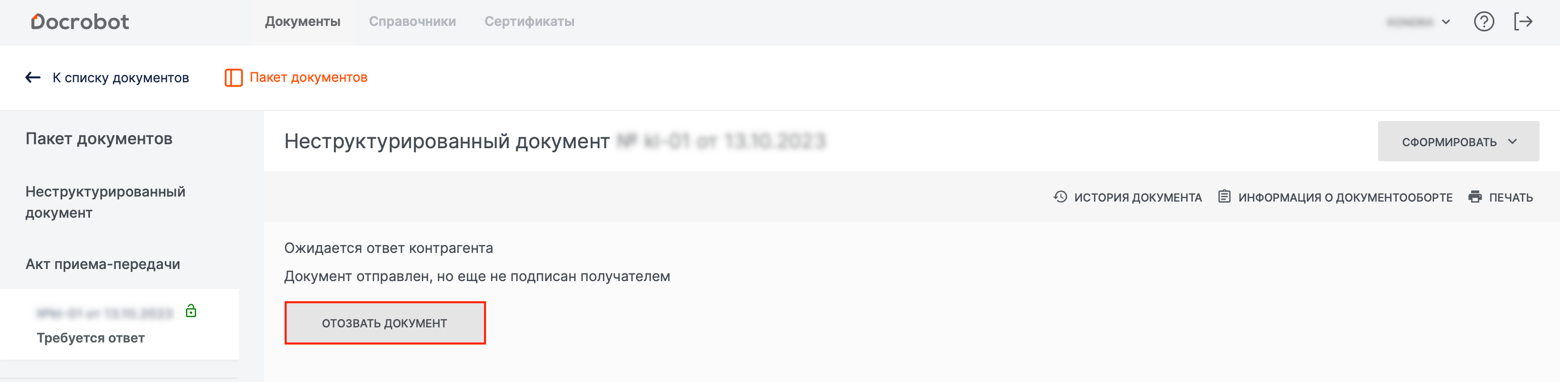 При поступлении новый входящий Неструктурированный документ будет иметь статус Требуется принять или отклонить. Для просмотра Неструктурированного документа, нажмите на него.
