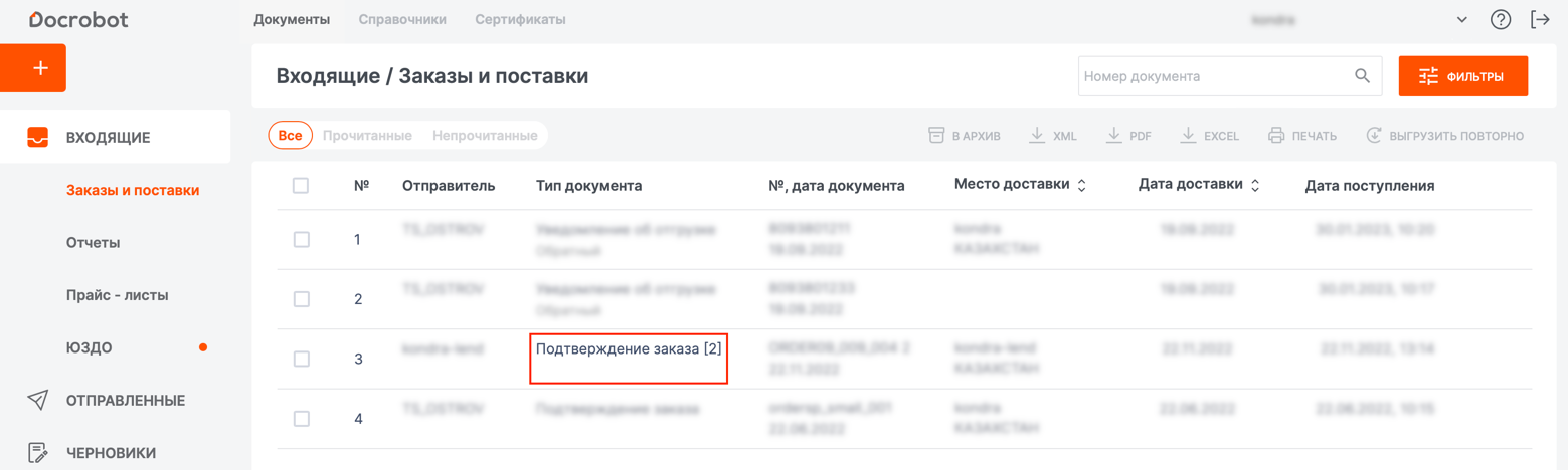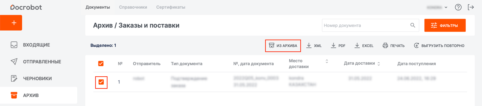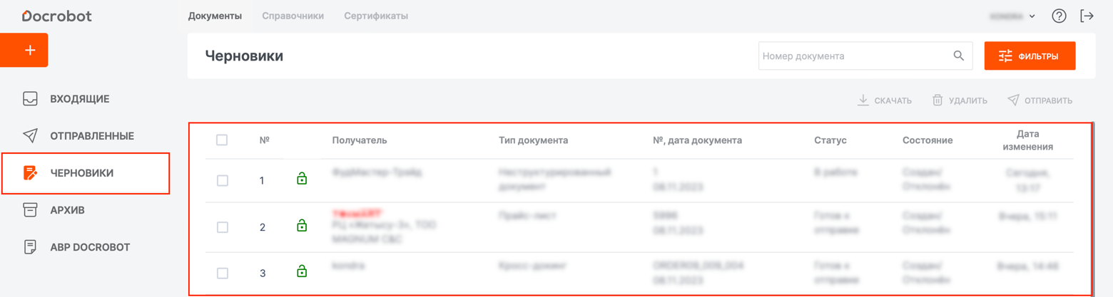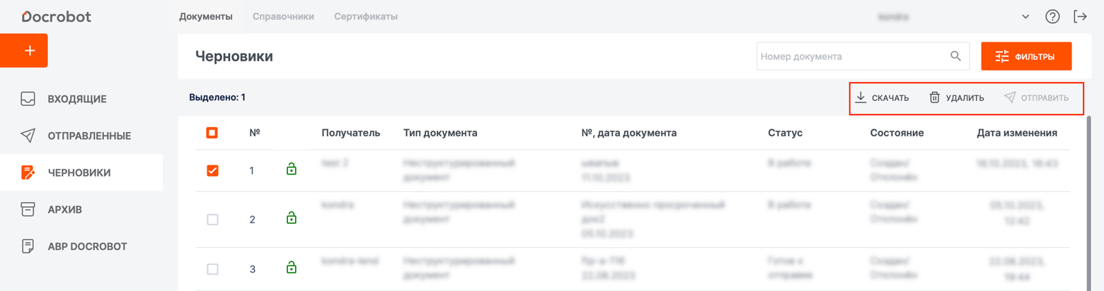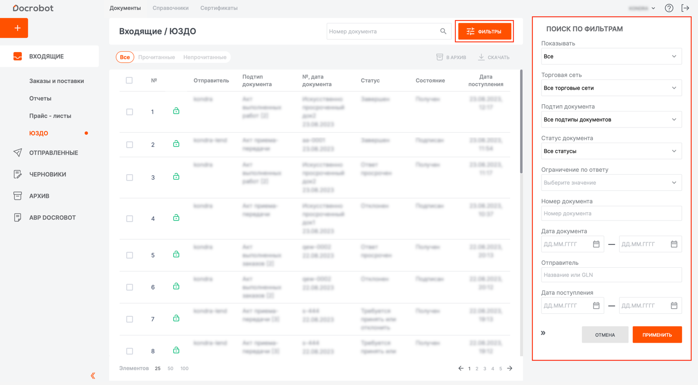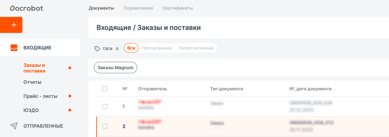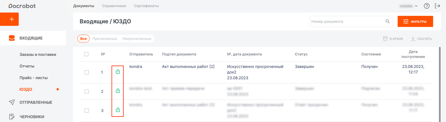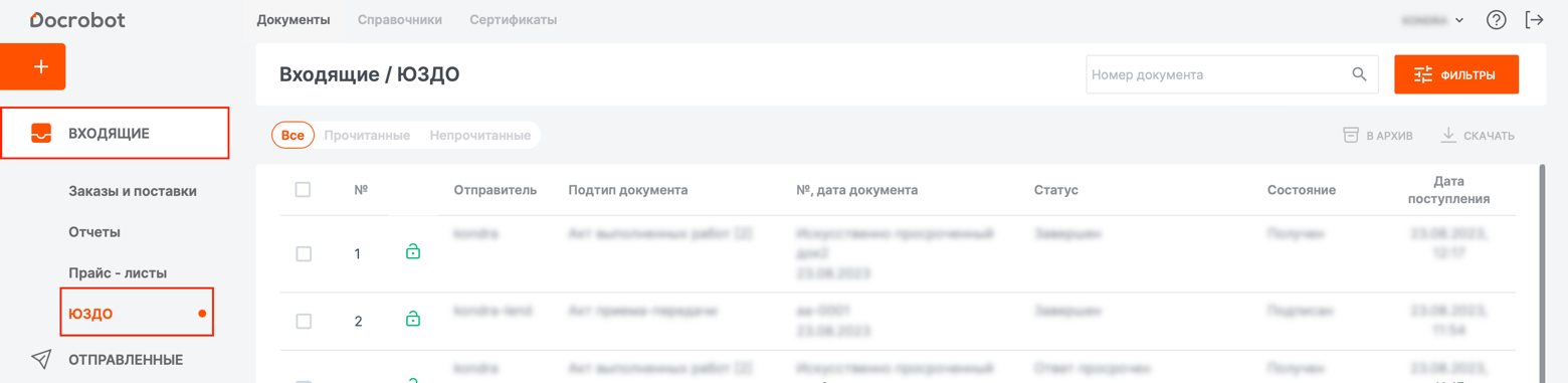 При поступлении новый входящий Неструктурированный документ будет иметь статус Требуется принять или отклонить. Для просмотра Неструктурированного документа, нажмите на него.