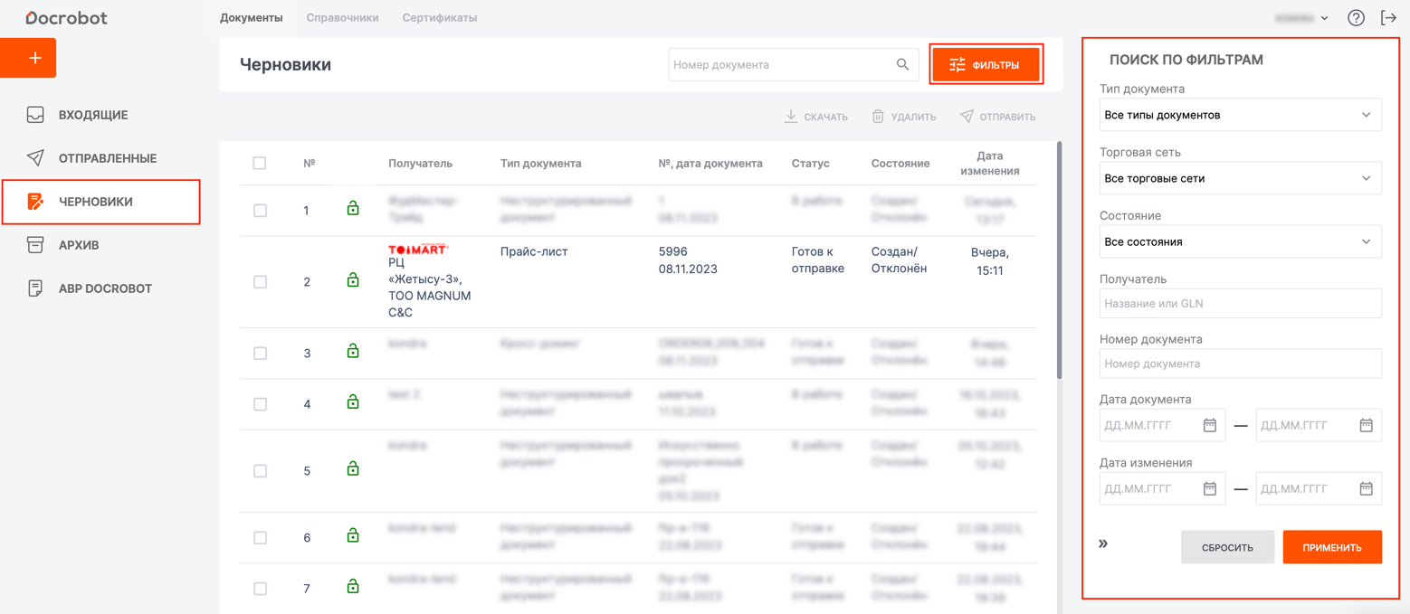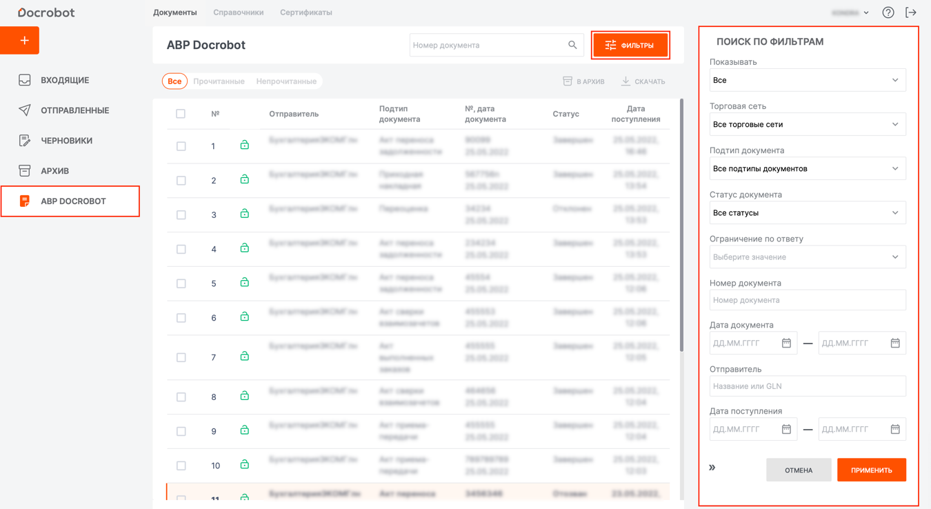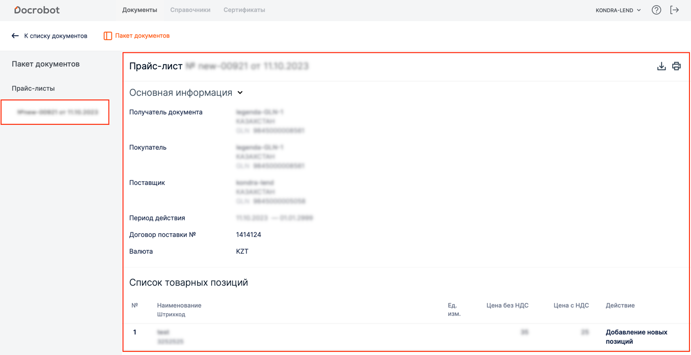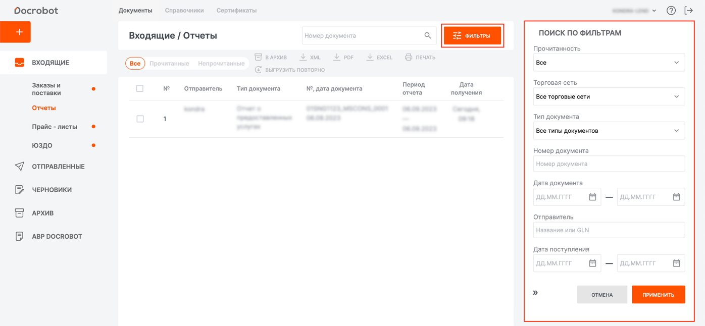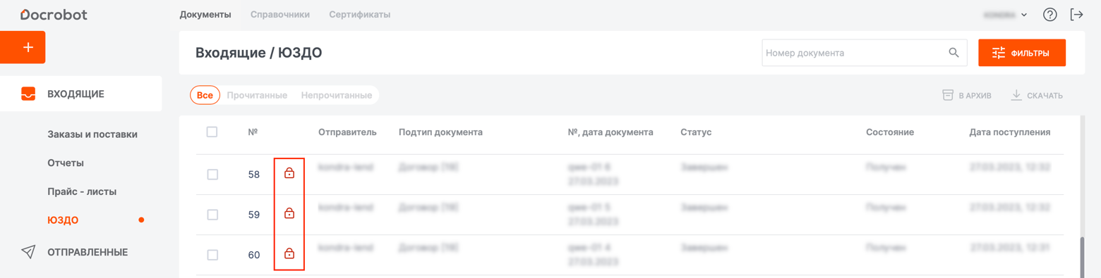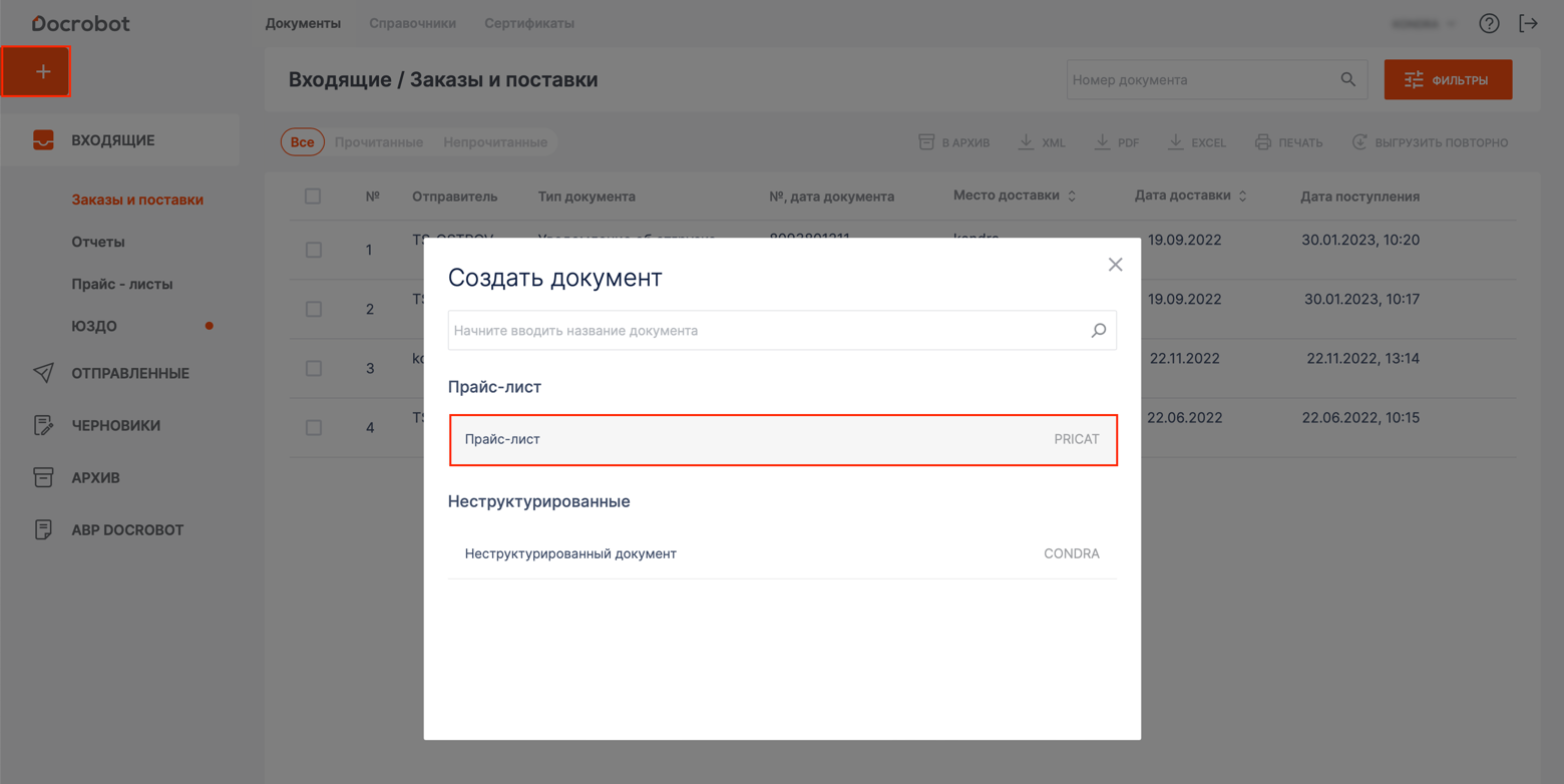 При поступлении новый входящий Неструктурированный документ будет иметь статус Требуется принять или отклонить. Для просмотра Неструктурированного документа, нажмите на него.