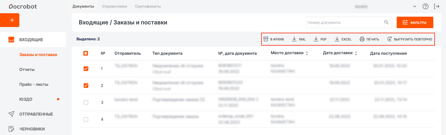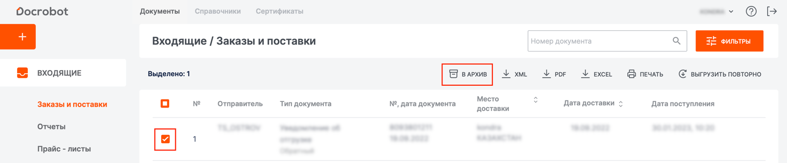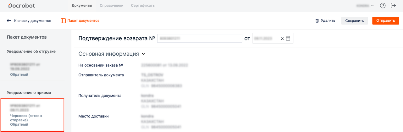 Поступивший документ следует принять или отклонить, нажав соответствующую кнопку.
