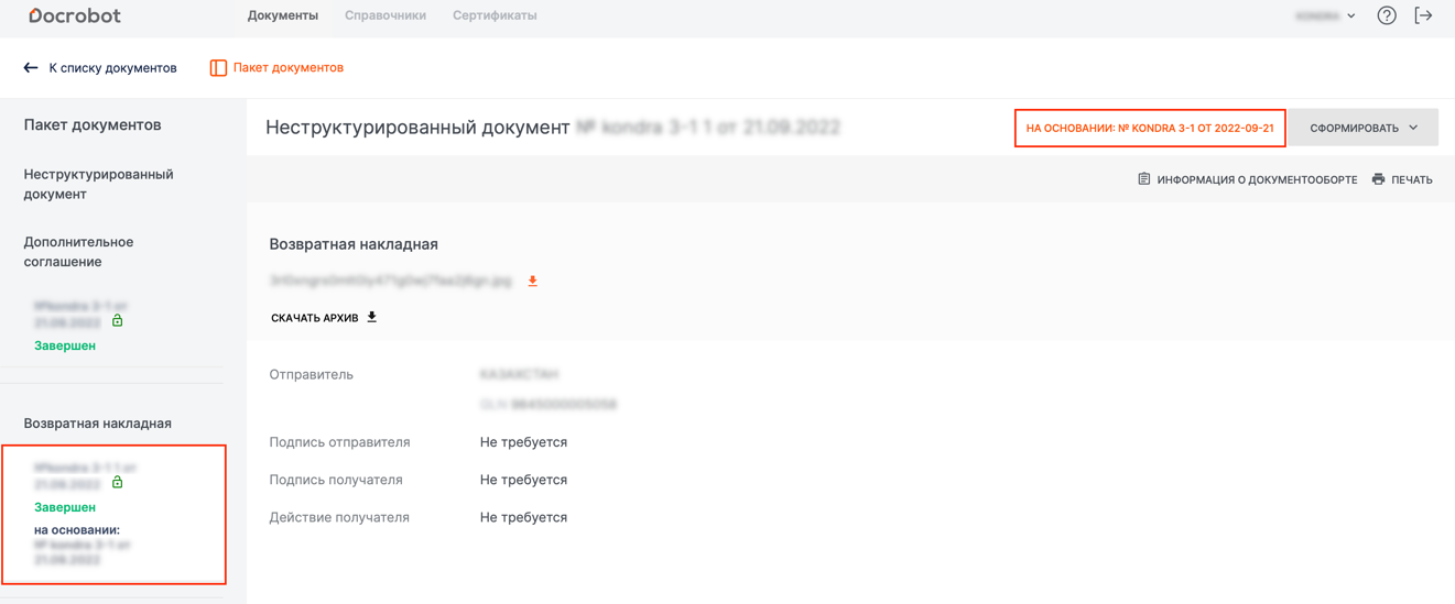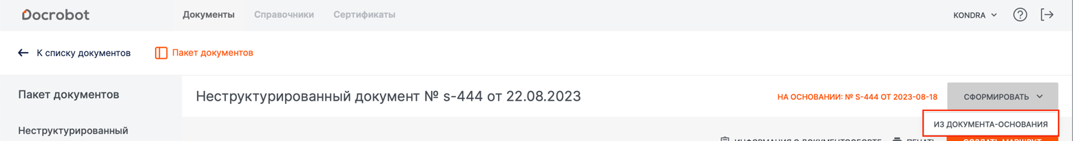 Если документ был создан на основе другого неструктурированного документа, в этом случае, слева, будет отображен список связанных документов с отметкой о создании на основании. Так же отметка о том, что документ создан на основе другого документа будет отображена справа от его заголовка.