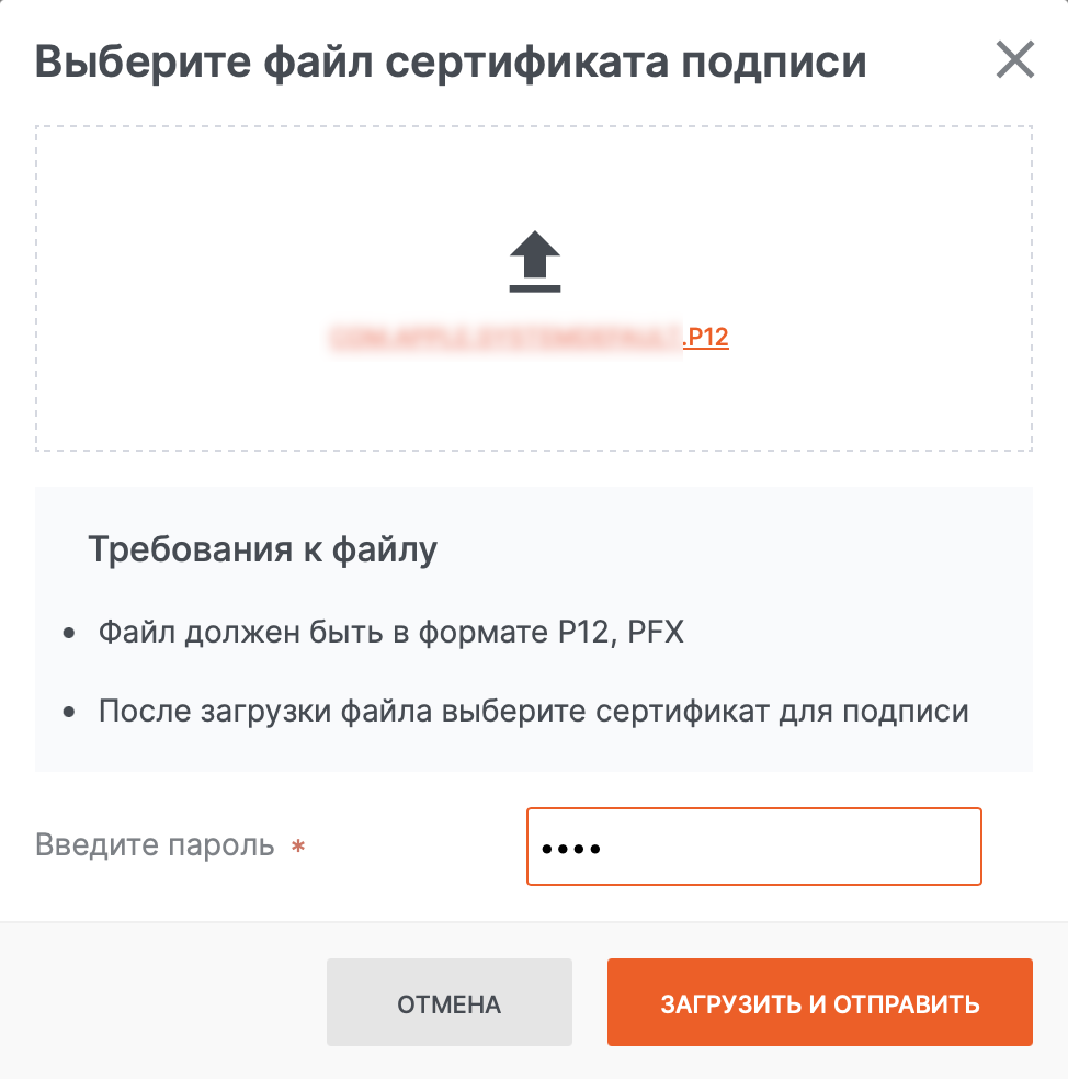 В появившемся поле нужно ввести пароль и нажать кнопку Загрузить и отправить.