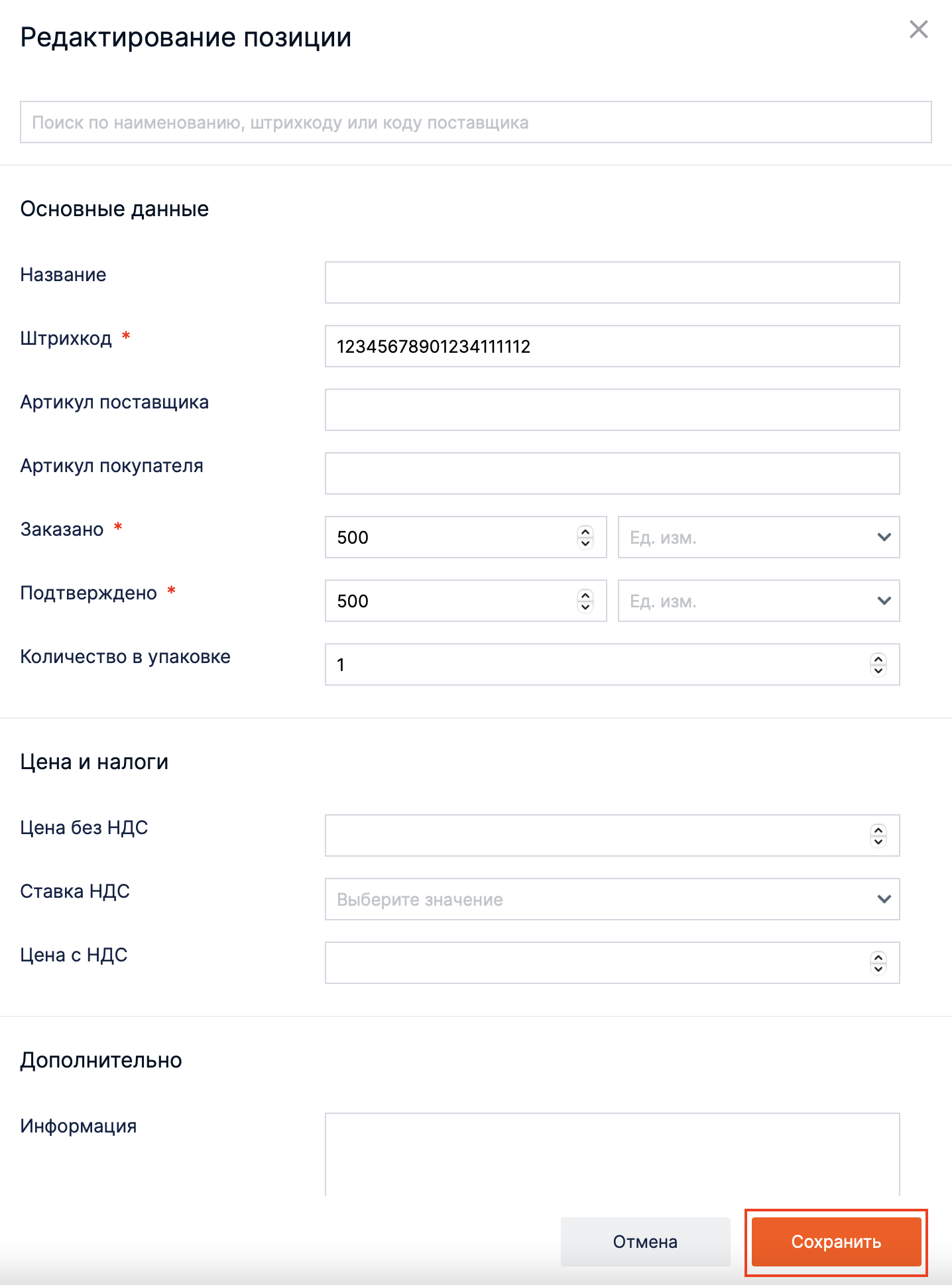 Если организация будет найдена, под строкой поиска будет отображена информация о ней: