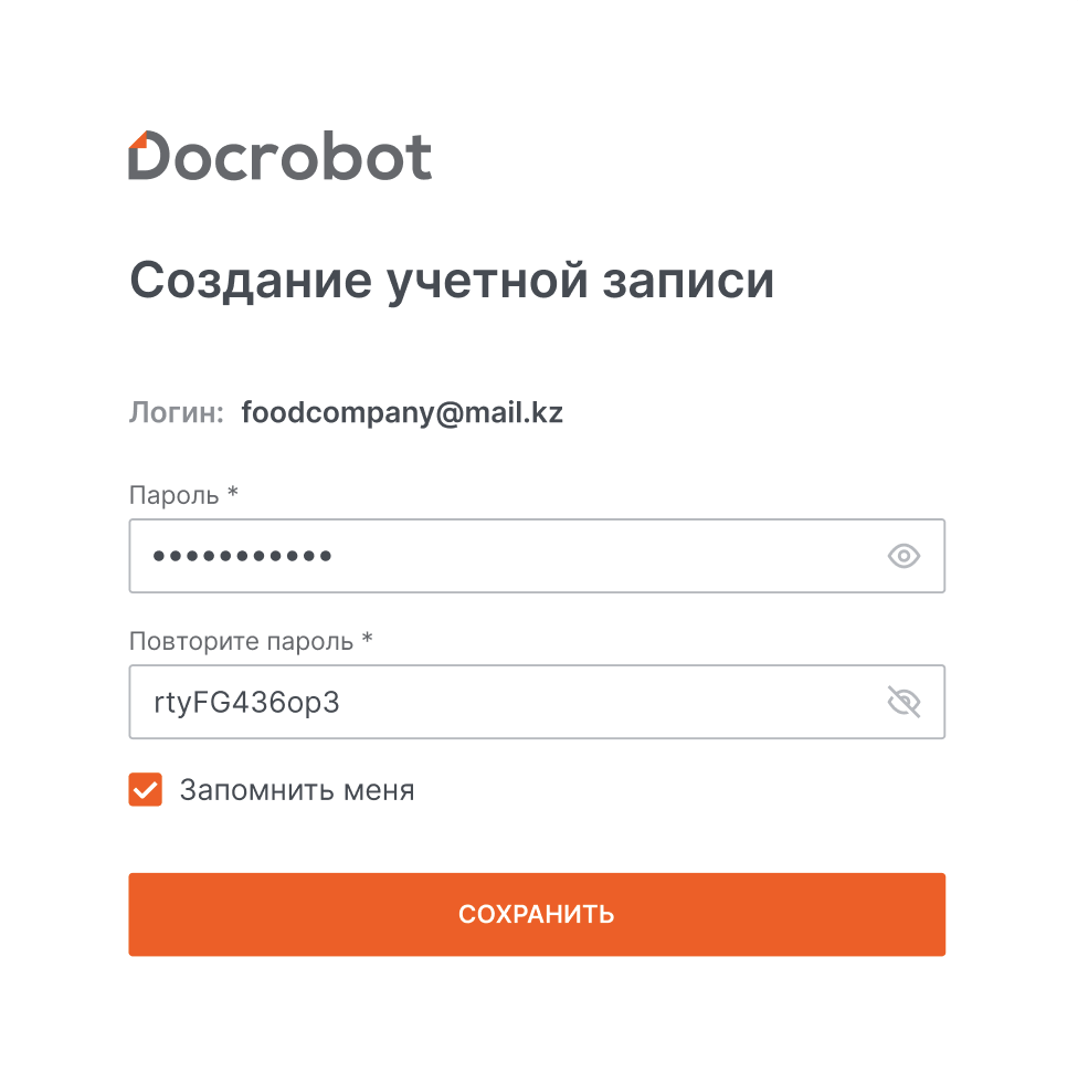 На следующем шаге необходимо задать пароль учётной записи и нажать кнопку Сохранить: